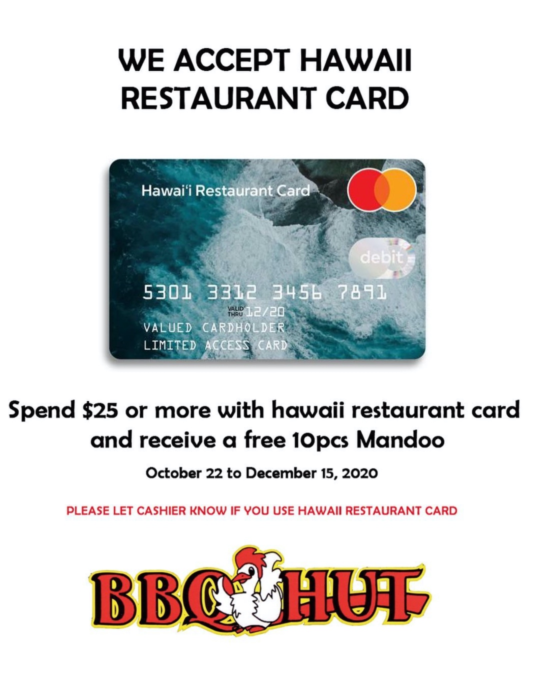 October 2 2020. The Hawaii Restaurant Card program is simple and easy to use. If you qualified for unemployment insurance since March 25 and are still receiving benefits youll soon be getting the Hawaii Restaurant Card in the mail.